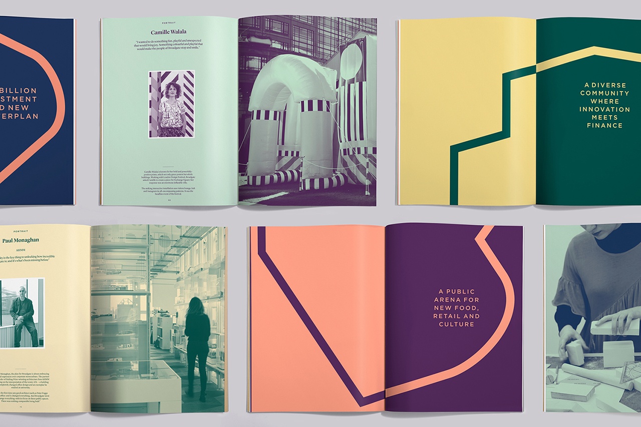 布羅德蓋特連接并包含不同的區域,每個區域都有自己獨特的性格,服務和體驗,并將繼續包括更多。將這些變成一個單一的連貫一致的品牌形象設計,“一個動態的,不斷變換的容器和輪廓”是本次設計的主題思路,把這一主題與對比鮮明的淺色調互補式處理相結合,用于海報,名片,手提袋,網站,裝置,社交媒體資料和商品上是本次設計的最終設計成果。