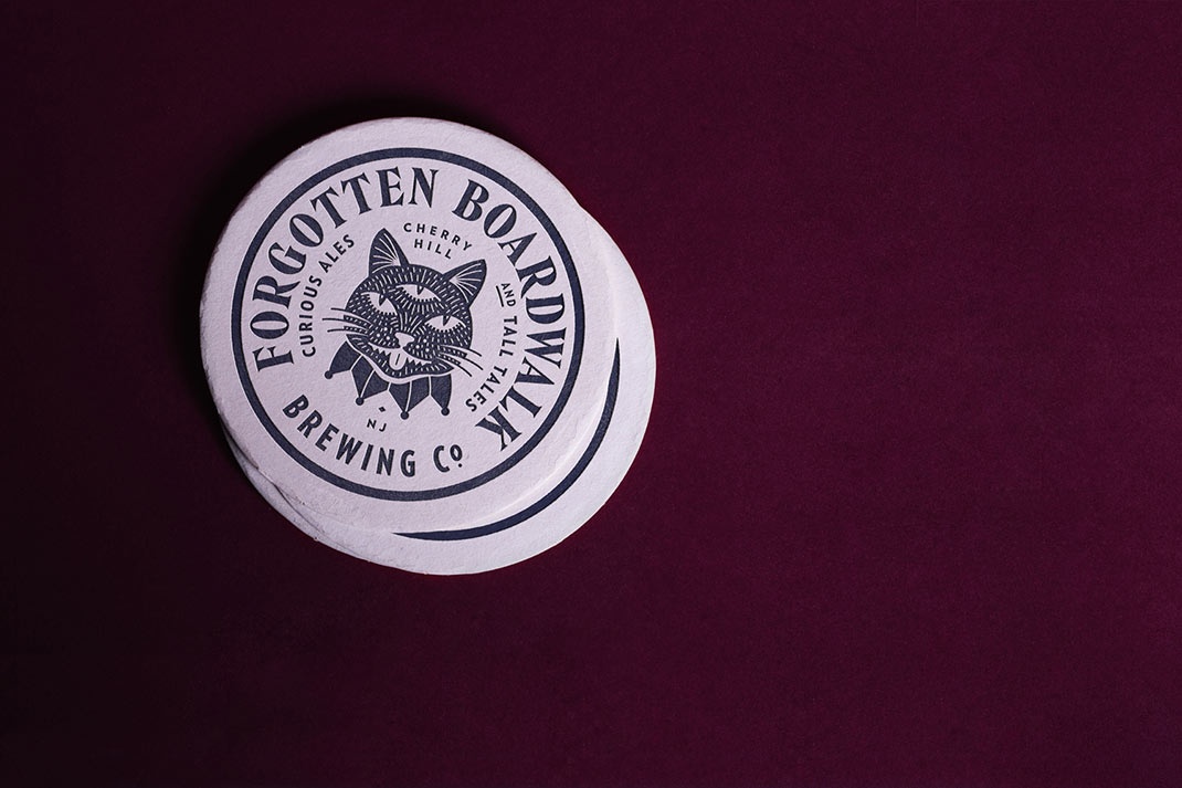 其他亮點包括一個不太熟悉的字體選擇在建立徽標,彎曲的基線和排版的圓型-以及這在凸版名片和杯墊的工作方式-插圖的陰影,這些故事的基礎上和貓尾啤酒輕觸。